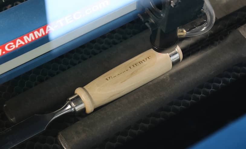 Nous gravons l’acier au carbone ou inox, l’aluminium, les essences de bois courantes et le cuir.